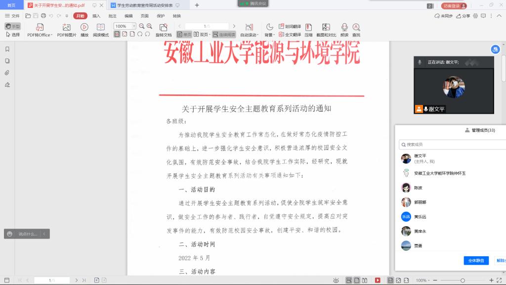 5月10日晚7点,能环学院召开班主任安全稳定工作专题会议。学院全体班主任及辅导员参加了会议,会议由院党委副书记谢文平主持。
