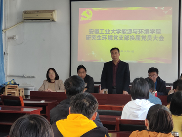 10月22日,安徽工业大学能源与环境学院研究生环境党支部于能源楼325会议室举行支部换届选举党员大会,会上,上届支部书记代表上届支部委员会向大会做工作报告,总结三年来的成绩和不足,对下届支部委员会工作开展提出了建议。院党委书记对研究生任支部书记的创新举措予以了充分肯定,并就支部建设和党员成长表达了院党委的殷切期望。