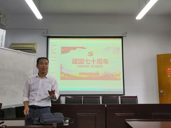 10月21日下午,能源与环境学院党委书记以“建国七十周年——光辉的历程伟大的奇迹”为题,结合“不忘初心、牢记使命”主题教育学习调研和学院实际,为全体学生党员讲授了一堂生动的主题党课。
