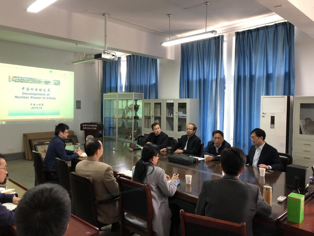 2019年4月16日上午,中国工程院院士、秦山二期工程总设计师,国防科学技术工业委员会专家咨询委委员,核安全专家委员会委员叶奇蓁做客能源与环境学院。校长魏先文、能源与环境学院领导班子、系班子和部分师生参加了会议。魏校长首先对叶院士的到来表示热烈欢迎,并向叶院士介绍了安徽工业大学的发展历程、学科发展和建设现状、师资队伍建设、创新创业教育和本科生教育情况。叶院士随后分享了自己的求学经历和早年工作经历,并对如何培养学生在结合知识与实际应用方面提出了自己的意见。能源与环境学院院长向叶院士汇报了学院的发展历史和学科现状,介绍了学院2个学科的特色和博士点学科建设情况。