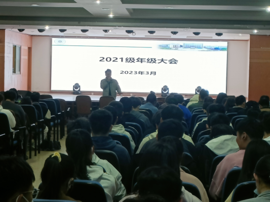 为教育引导广大青年学生尽快适应新学期的学习生活,端正学习心态,明确学习目标,3月16日晚,学院于佳山校区大学生活动中心召开了2021级春季学期年级大会。2021级全体学生参加了本次会议,会议由辅导员黄乐远主持。