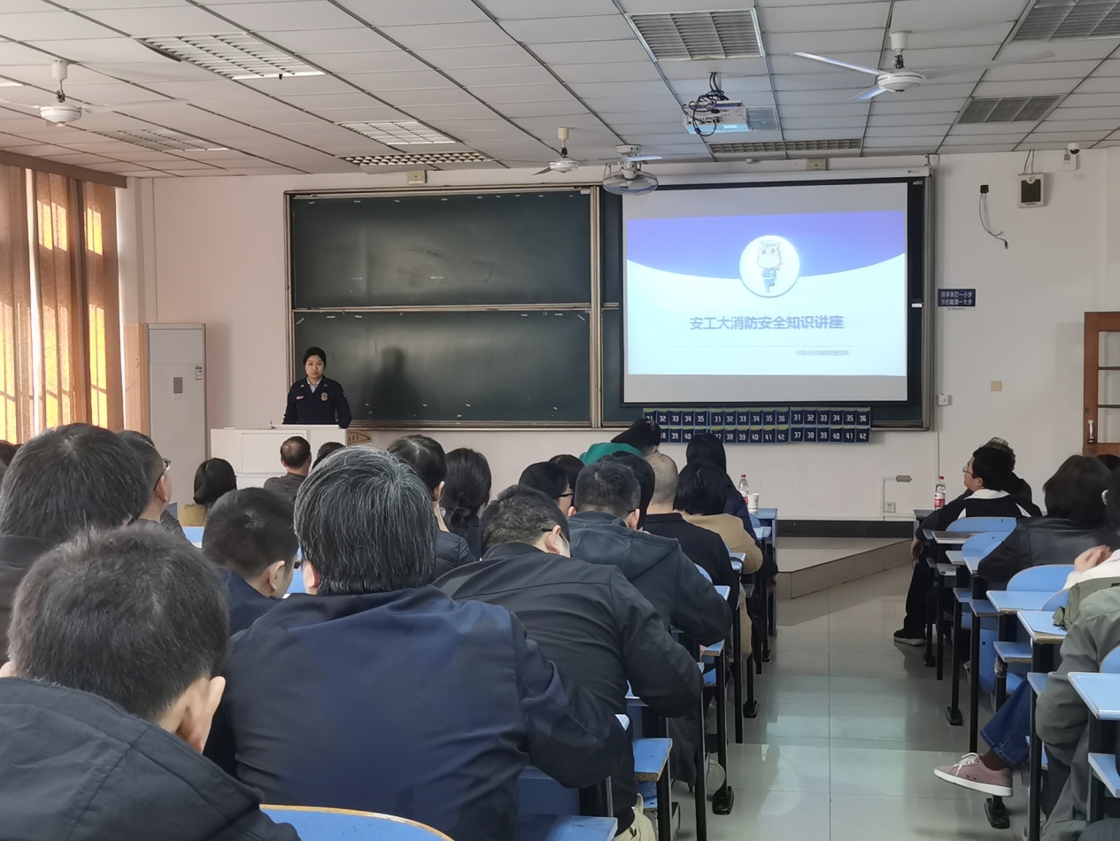 为提高教师实验室的消防安全意识和应急处置能力,筑牢安全防线,11月20日下午,能环学院邀请马鞍山消防支队张蕴昕教官在教三北112举行针对教师的消防安全知识专题讲座。讲座由学院党委书记谢文平主持,学院领导班子全体成员及全院教职工参加了此次培训活动。