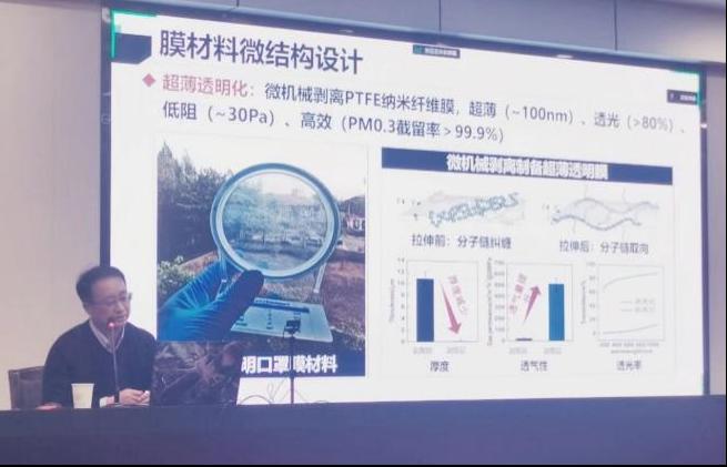 仲兆祥教授从新冠疫情的防控入手,讲解了空气中有害污染物质的分类及尺度分布,指出后疫情时代,用于病毒防护的空气过滤材料成为重大需求。同时他介绍了纳米纤维膜的应用优势、常用制备方法及过滤原理,提出超薄透明化微机械剥离PTFE纳米纤维膜的制备思路。指出层间界面阻力是膜传质阻力的另一重要构成,提出跨层结构或多层次结构,能够有效分析膜材料结构与气体渗透性或截留率之间的构效关系。最后,仲兆祥教授还介绍了多污染物的反应与分离协同进化机制,其中包括二次载体的精准设计及Ai性能预测等。