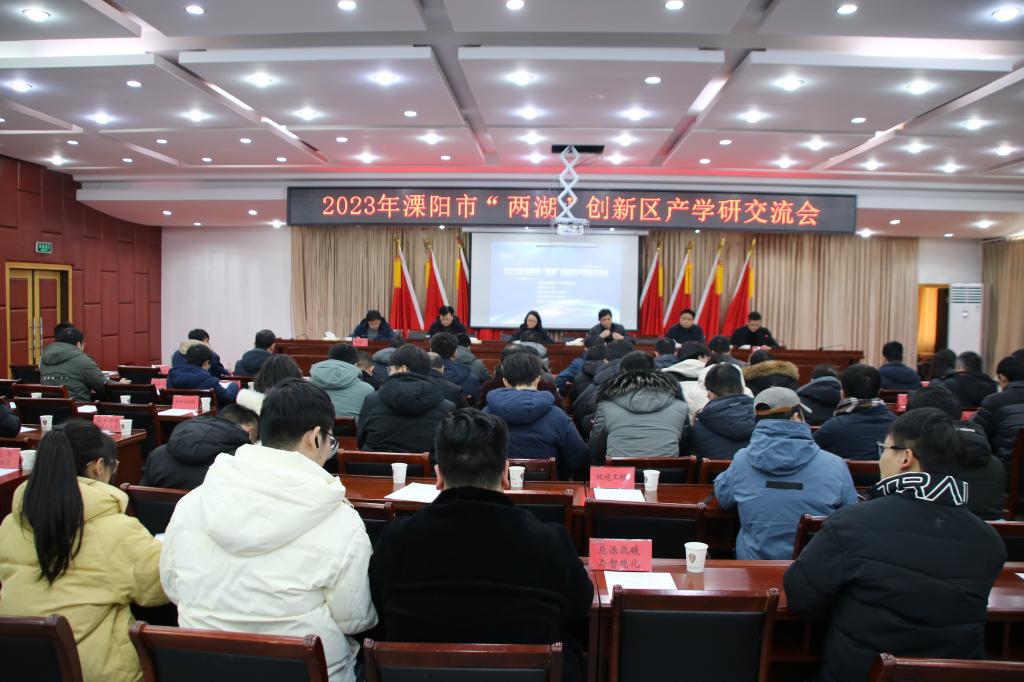 为了精准匹配毕业生就业需求,落实学校学院化专业化的工作要求,实现毕业生和导师与企业及归属地四方间的面对面供需对接,整合资源,多方联动,12月20日,在溧阳市上黄镇由安徽工业大学能源与环境学院联合常州市新能源产业科技镇长团、埭头镇人民政府、别桥镇人民政府和上黄镇人民政府共同主办了2023年溧阳市“两湖”创新区产学研交流会。学院院长钱付平,院党委副书记卫军帅、副院长楚化强、溧阳市政府党组成员,副市长,常州市新能源产业科技镇长团团长王芳、上黄镇党委书记强建方,以及溧阳市科技局领导、常州市新能源科技镇长团成员、埭头镇、别桥镇、上黄镇相关企业负责人和安徽工业大学、华中科技大学和常州大学师生代表共计70余人参会。