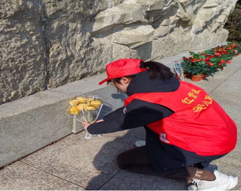 寒假实践队员向革命先烈献花