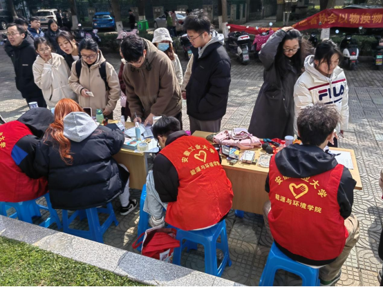 为了实现物尽其用、节约环保、循环利用的良好效益,弘扬中华民族勤俭节约的优良传统美德,2024年3月9日,能源与环境学院青年志愿者协会于第三食堂前开展雷锋月“以物换物”活动。