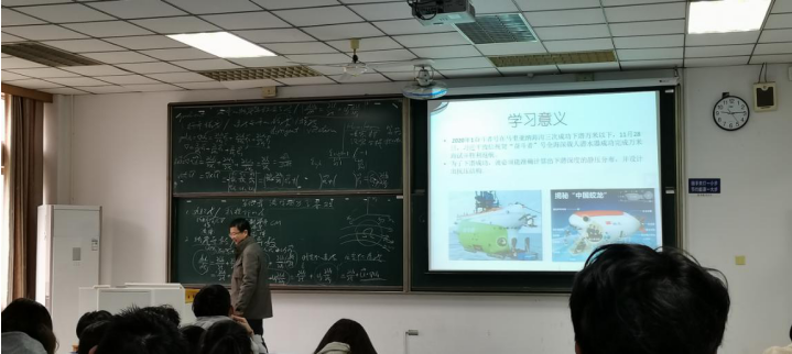 3月28日上午,环境系黄河清老师在教三北112开讲《工程流体力学A》“课程思政”公开课,黄河清老师以“奋斗者”号全海深载人潜水器成功完成万米海试并胜利返航为背景,介绍了如何准确计算出下潜深度的静压分布并设计出抗压结构,并进行了爱国主义教育,将爱国主义教育融入课程,有利于统一思想,提高认识,淬炼品格,增强本领。实现中华民族伟大复兴是近代以来中华民族最伟大的梦想,也是中国共产党百年奋斗的主题。青年是民族的未来,国家的希望,更是实现中华民族伟大复兴的先锋力量。为更加全面地评价学生的学习活动与学习效果,加强对教学过程的建构、考核和管理,本次公开课设计10道以上的选择题测试及Python编程应用案例,在教学过程中即时、动态、多次对学生实施的评价,注重及时反馈,用以提高教学质量。