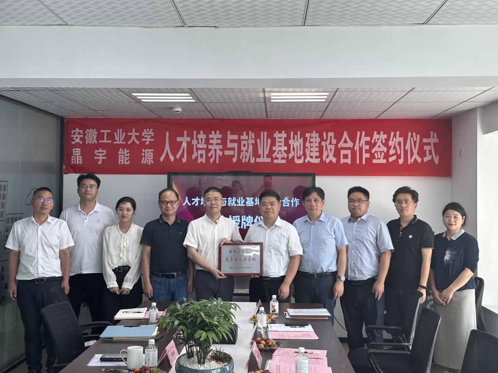 期间,陆林还代表学校授予马鞍山晶宇(盛)能源科技股份有限公司“安徽工业大学就业基地”牌匾,见证了双方签署人才培养与就业基地建设合作协议,现场听取了公司负责人对核心新产品的介绍。