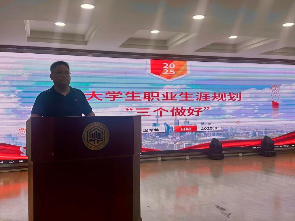 “职业生涯规划第一课”同样受到同学们的广泛关注。卫军帅从“做学问、做事、做人”三个维度出发,建议同学们尽早确立目标、做好学业与职业规划,不断提升综合竞争力。他指出,大学阶段不仅是知识积累的黄金期,更是人格养成和能力锻炼的关键阶段,希望新生以扎实学识、良好品格和明确方向为未来奠定坚实基础。