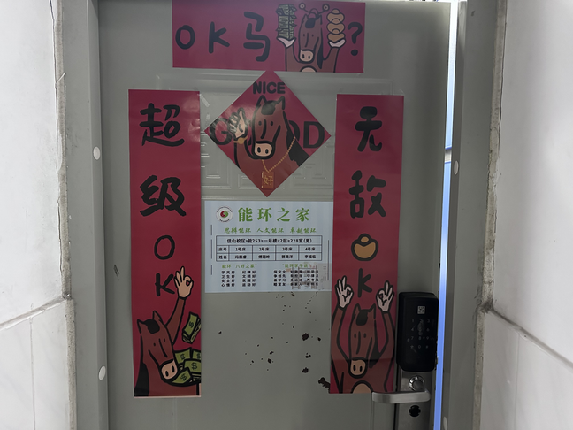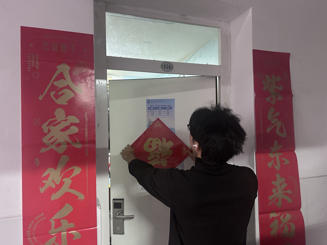 与此同时,一场以“寓见焕新”为主题的宿舍美化行动也在各学生宿舍同步开展。同学们积极动手,对宿舍进行了一次彻底的大扫除,清理杂物,整理内务,并贴上了刚刚领取到的或自己书写的崭新春联和“福”字。原本整洁的宿舍在红火的春联映衬下,更添了一份新春的喜庆与家的温馨。这一行动不仅提升了同学们的居住环境品质,也增强了室友间的协作与凝聚力,将学院的关怀切实融入到学生的日常生活空间。