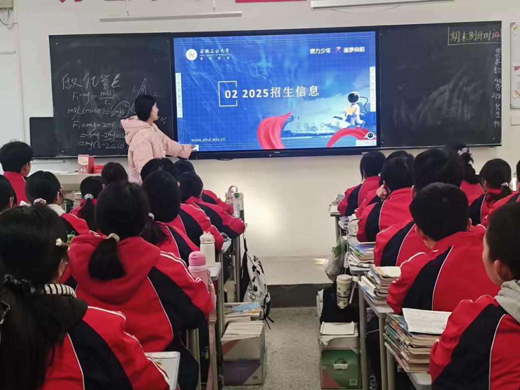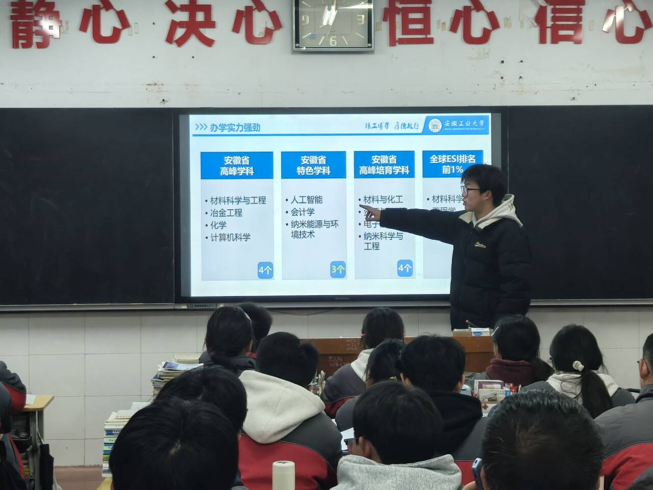 为加强高校与生源中学之间的联系,充分展示安徽工业大学的办学实力与育人成果,能源与环境学院于2026年寒假期间组织开展“我把工大带回家乡”专项社会实践活动。学院组建多支宣讲队伍,分赴安徽、重庆、陕西、山东、河北、江西等全国多省市重点中学,通过进班宣讲、座谈交流、设点咨询等形式,全方位推介安徽工业大学,传递工大声音,讲好工大故事。