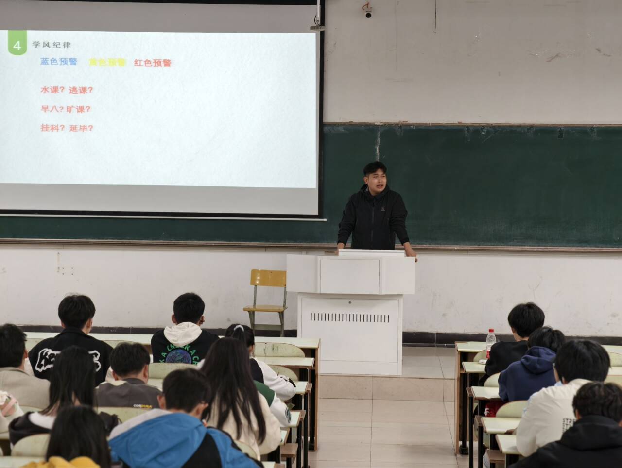 学风建设环节着重强化纪律意识与目标导向,会上明确课堂纪律基本要求,严肃出勤、听讲、作业与考风考纪等关键规范,清晰重申学业预警底线,帮助同学们找准大学学习主线,端正学习态度、夯实专业根基,共同营造勤学善思、严谨求实的优良学风。