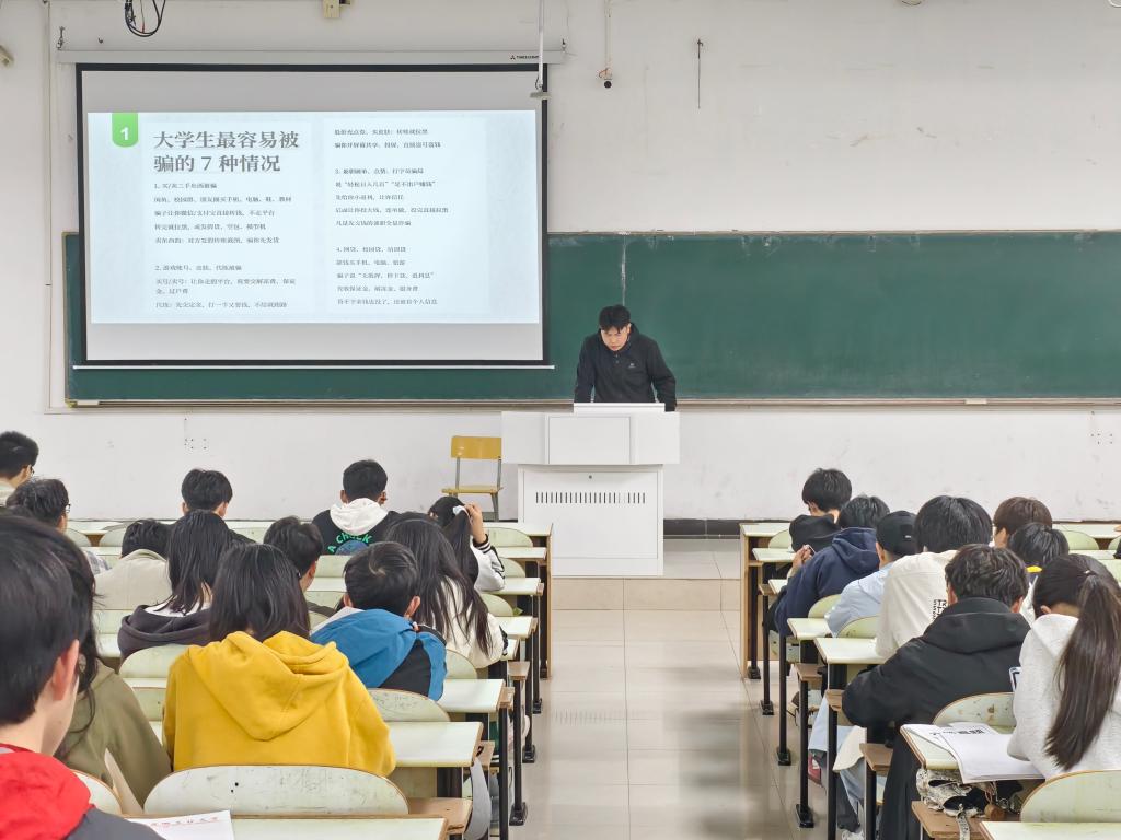 在安全教育环节,赵杨以大学生常见诈骗案例为切入点,开展防诈专题教育,以案释法、以案明纪,提醒同学们提高警惕、守住钱袋。同时,围绕宿舍安全、交通安全、食品安全、心理安全、消防安全、实验室安全、防溺水安全等关键维度逐一强调,普及安全知识,明确防范要求,引导同学们树牢 “安全第一” 意识,守护自身健康与平安。